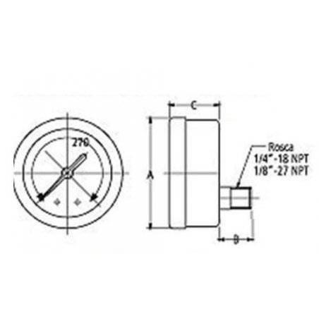 63460/7-4 Manómetro carátula de 2 1/2" c/glicerina conexión posterior 1/4” NPT acero inoxidable rango 0-7 kg/cm2