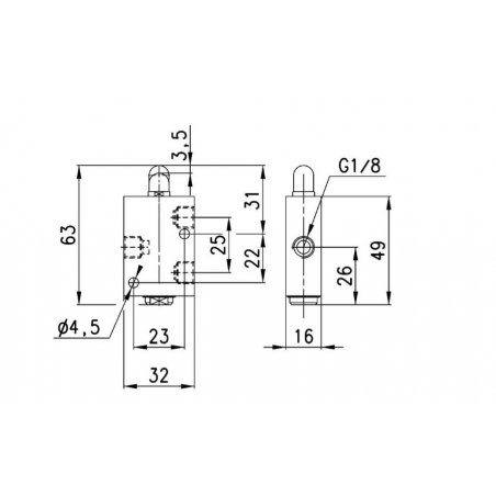 Válvula 3/5 normalmente abierto accionamiento de leva y rodillo 1/8 148-955