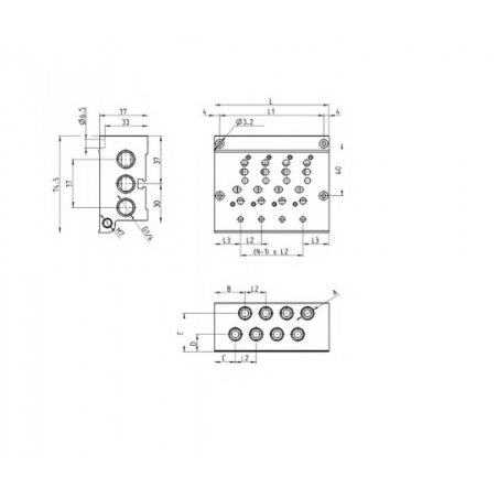 N° posiciones valvulas A B C D E L L1 L2 L3