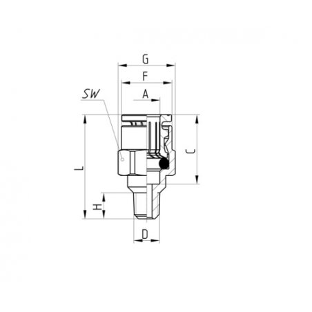 Materials - standard models: body and collet in nickel-plated brass, O-Ring in NBR, thread seals in NBR - models with VNR: body and collet in nickel-plated brass, spring and ball in stainless steel, O-Ring in NBR