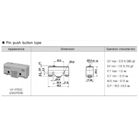 Micro switch básico con pulsador pin 1NA + 1NC 10amp 250vca HY-P701C