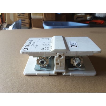 K terminales de conexión, para AL y CU, un lado redondo y el otro lado plano, corriente de funcionamiento nominal Ie = 160 A, número polo = 1, capacidades de terminal: cable redondo de cobre trenzado, trenzado sectorial, cable redondo sólido, sector sólido sólido o aluminio cable redondo sólido, sectorial sólido = 1x16-95mm². Aluminio sectorial sólido = 1x35-70mm². Otro lado: banda de cobre = 3x9x0.8 hasta 6x9x0.8 o barra de Cu = 18x4mm, notas: Kits de conversión para terminal de banda en conexión de cable disponibles por separado, cubiertas de terminales disponibles por separado