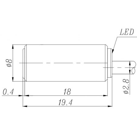 Sensor inductivo, Carcasa cilíndrica lisa de metal d = 8 mm, Distancia de conmutación 2 mm, enrasado, IP67, -25…70°C, PNP NA, Cable 2 m
