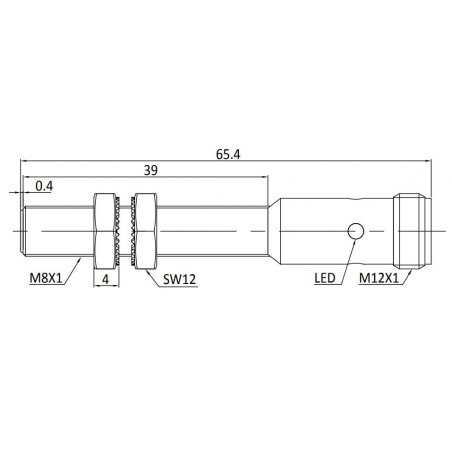 Detector inductivo, Carcasa cilíndrica roscada M8, Distancia de conmutación 2mm, rasante, IP67, -25...70°C, NPN NC, Conector M12