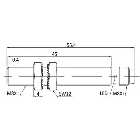 Dimensiones: M8 x 55,4 mm