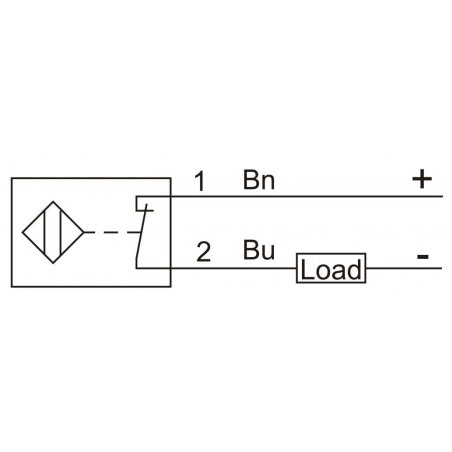 Detector inductivo, Carcasa cilíndrica roscada M12, Distancia de conmutación 2mm, rasante, IP67, -25...70°C, 2 hilos CC, Cable 2m