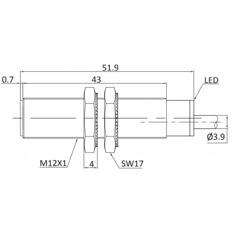 Detector inductivo, Carcasa cilíndrica roscada M12, Distancia de conmutación 2mm, rasante, IP67, -25...70°C, 2 hilos CC, conector M12