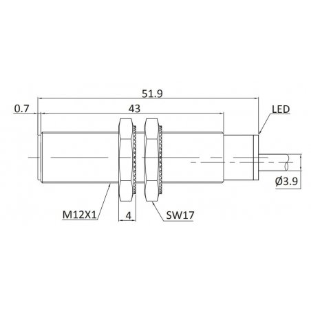 Sensor inductivo, Carcasa cilíndrica roscada M12, Distancia de conmutación 2 mm, enrasado, IP67, -25…120°C, PNP NA, Cable 2 m