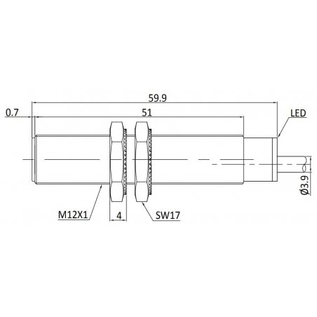 Detector inductivo, Carcasa cilíndrica roscada M12, Distancia de conmutación 2mm, rasante, IP67, -25...70°C, 2 hilos CA NA, Cable 2m