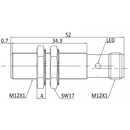 Detector inductivo, Carcasa cilíndrica roscada M12, Distancia de conmutación 2mm, rasante, IP67, -25...70°C, 2 hilos CA NA, conector M12