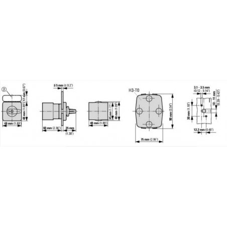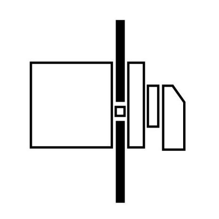 Interruptor de levas según IEC / EN60947, tamaño T0, forma de instalación, placa frontal 48x48, grado de protección Frontal IP65 con empuñadura negra, corriente nominal ininterrumpida Iu 20A, voltaje de funcionamiento nominal Ue 690V, accesorios entregables según información del catálogo interruptor de levas T. Diseños generales: carcasa adicional de material aislante, montaje empotrado, montaje central, montaje posterior Montaje de la placa de distribución de servicio IVS.