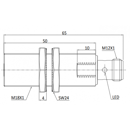 Detector inductivo, Carcasa cilíndrica roscada M18, Distancia de conmutación 8mm, rasante, IP68, -30...85°C, PNP NA, Conector M12