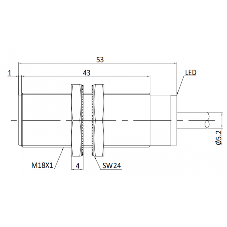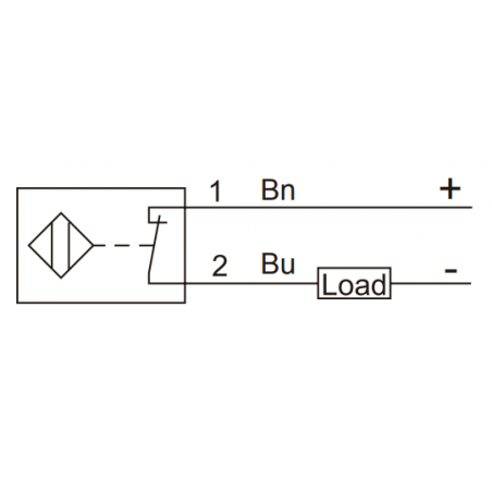 Sensor inductivo, carcasa cilíndrica roscada M18, distancia de conmutación 8 mm, enrasado, IP67, -25…70 °C, 2 hilos CC, cable de 2 m