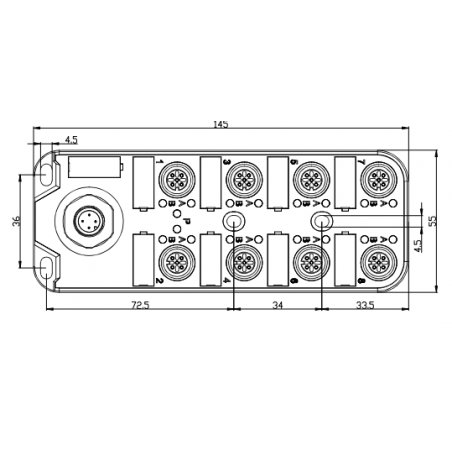 Concentrador de sensores IO-Link V1.1.3 Clase A Módulo base con conector M12 de 5 polos 8xM12, 3 polos, 24VDC, LED, 16DI/DO, PNP