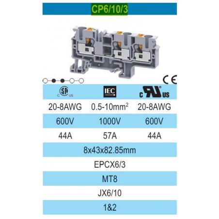 CP6/10/3 Clema conexión instantánea, 8x1 nivel, para 44A, 600V