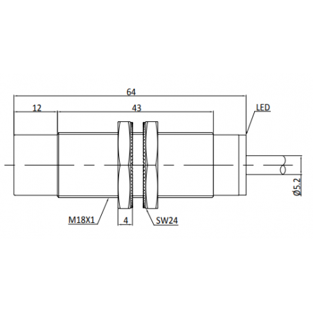 Sensor inductivo, carcasa cilíndrica roscada M18, distancia de conmutación 12 mm, no enrasado, IP67, -25…70 °C, CC de 2 hilos, cable de 2 m
