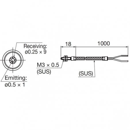 Cabezal de fibra, M3, Reflexión difusa, Coaxial, Funda metálica, R10, 1m