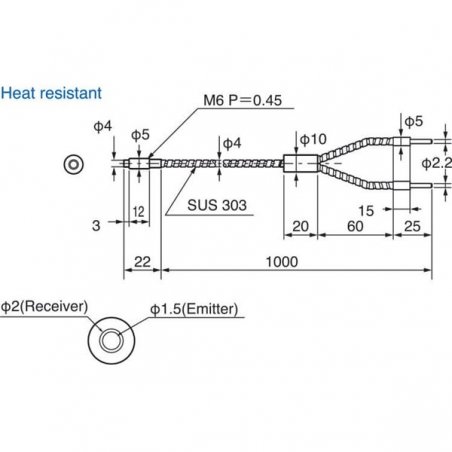 Cabezal de fibra, Detección de agua, Reflexión difusa, Manga SUS, Resistencia al calor -40~200°C, R25, 1m