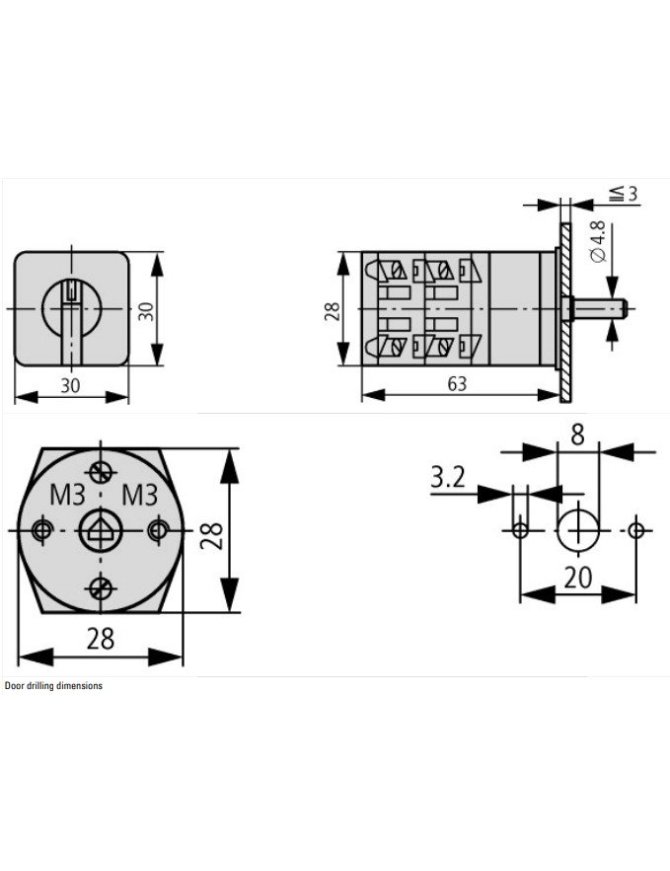 Interruptores de paso, contactos: 6, 10 A, placa frontal: 0-3, 45 °, 3 pasos, 45 °, mantenido, montaje empotrado