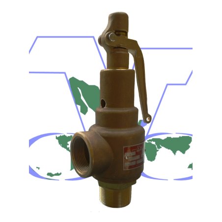 Válvula de seguridad angular con conexiones roscadas NPT macho a la entrada y hembra a la salida para presiones de hasta 21.1 Kg/cm² (300 psi)