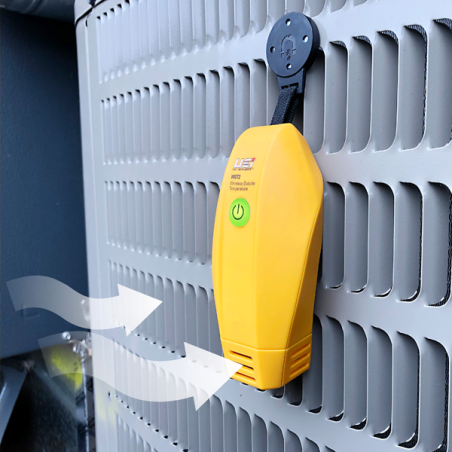 Sonda de temperatura exterior inalámbrica para medir la temperatura en la unidad condensadora y realizar cálculos de sobrecalentamiento objetivo en tiempo real cuando se utiliza en combinación con las sondas HUB.