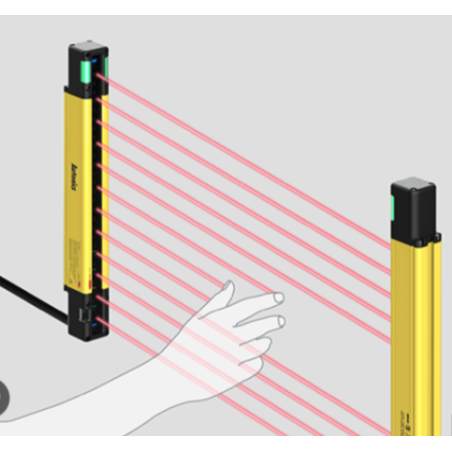 Enclavamiento (reinicio mantenido), monitoreo de dispositivo externo (EDM), silenciamiento/supresión, Blanking (blanqueo fijo, blanqueo flotante), resolución reducida |