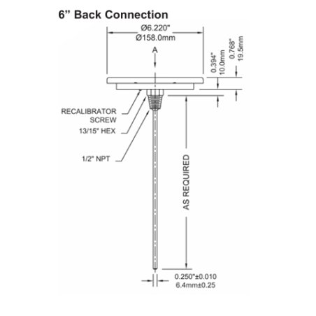 TBM52060-B30 Termometros bimetalicos de 0/100 vastago (pulg) 6 diametro