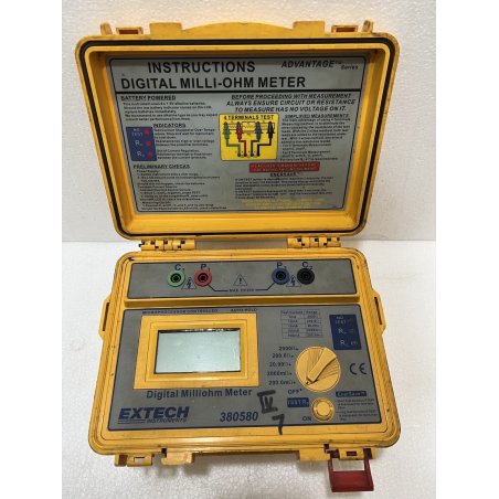 El 380580 es un medidor de miliohmios alimentado por batería. Este medidor de miliohmios cuenta con una alta precisión, un medidor de miliohmios portátil de alta resolución que funciona con batería para uso en el campo, mediciones Kelvin de cuatro terminales y protección contra sobre-temperatura y sobrevoltaje. Certificado CE. Completo con 8 pilas AA y 2 juegos de cables de prueba (4 hilos con 4 pinzas de cocodrilo y 4 hilos con 2 pinzas de cocodrilo Kelvin).