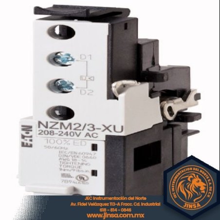 No retardada desconexión de NZM disyuntor o N seccionador de carga cuando los sumideros de voltaje de control por debajo de 35 - El 70% U S . Para usar con dispositivos de apagado de emergencia junto con el botón de apagado de emergencia. Cuando la liberación de mínima tensión se desenergiza, se evita de forma segura el contacto accidental con los contactos principales del interruptor durante los intentos de encendido. Los relés de mínima tensión no pueden instalarse simultáneamente con NZM ...- XHIV ... hacer contactos auxiliares de forma anticipada o NZM ...- XA ... liberar derivación. |