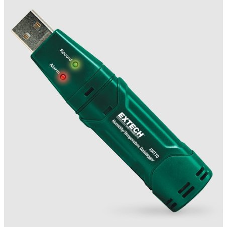 El RHT10 registra lecturas de humedad y temperatura (hasta 16.000 cada una) con frecuencias de muestreo programables por el usuario desde 2 segundos hasta 24 horas durante días, semanas y meses. Interfaz USB para una fácil configuración y descarga. Indicación del punto de rocío a través del software Windows incluido. Umbrales de alarma Alto/Bajo programables por el usuario para HR y temperatura. Completo con batería de litio de 3,6 voltios, tapa protectora USB, soporte de montaje y software compatible con Windows para el análisis.